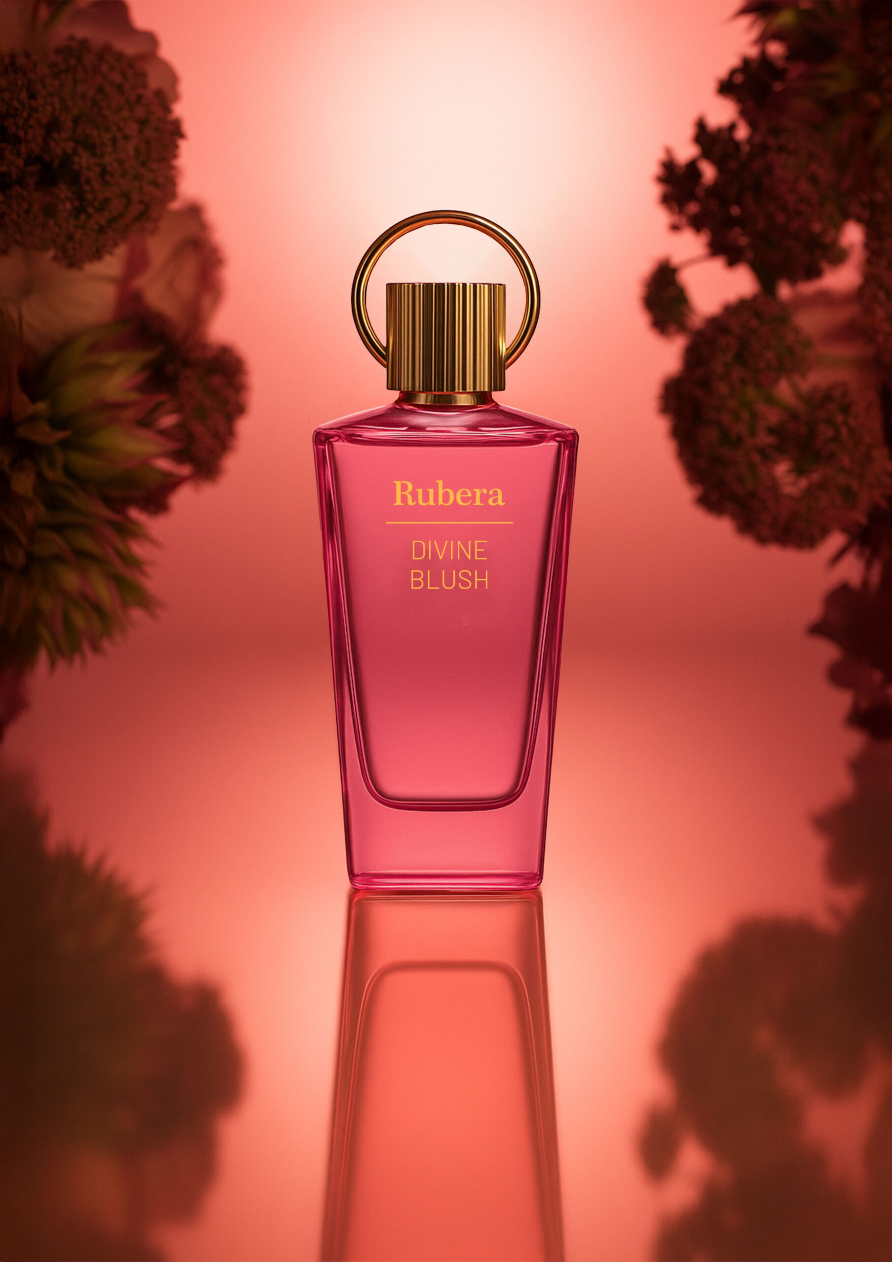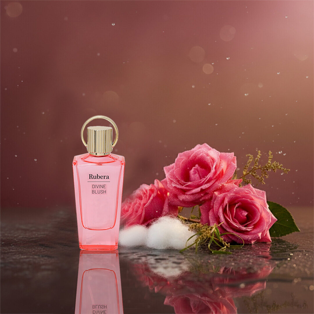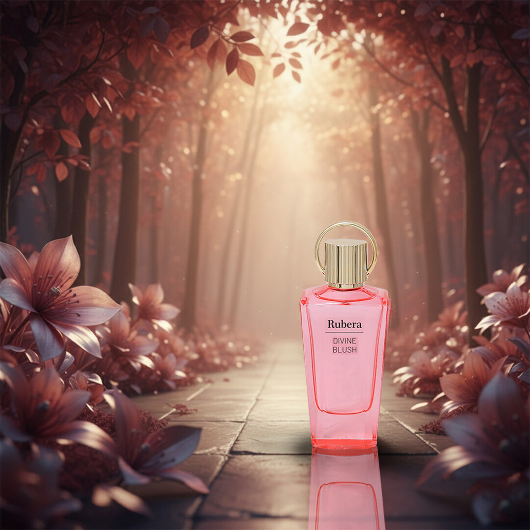 Divine Blush begins with rhubarb, lychee, and bergamot essence. The heart reveals Damascena rose and vanilla, while the base rests on cashmeran, musk, and vetiver, creating a sensual and feminine finish.