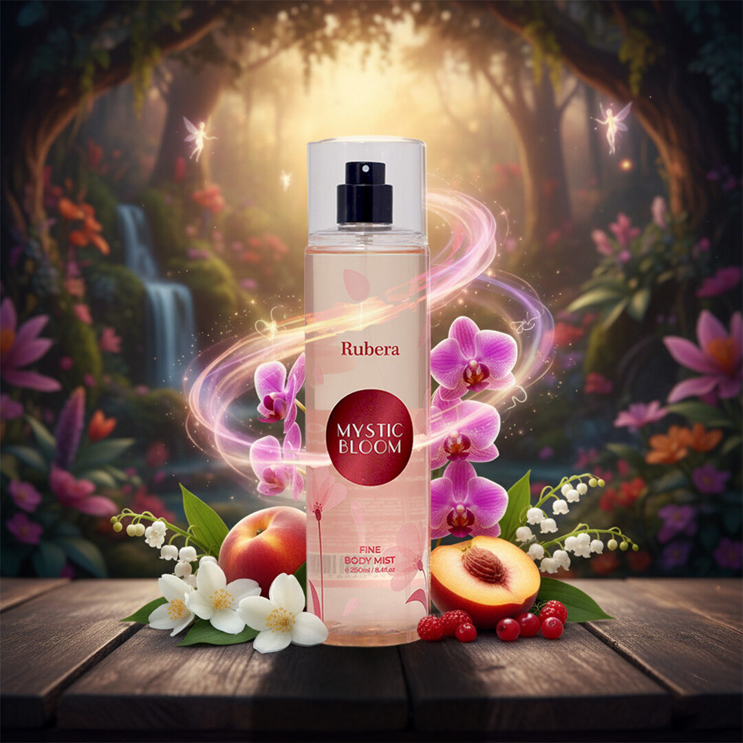 Mystic Bloom begins with citrus, fresh, and fruity top notes, blending beautifully into a floral heart of jasmine, lily of the valley, and orchid. The scent deepens into ambergris, musk, and sandalwood, leaving a mystical trail.